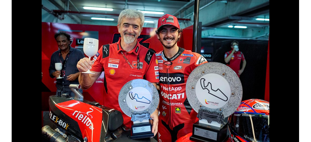 O Pecco Bagnaia ξεκίνησε από την 1η θέση της σειράς εκκίνησης, καταγράφοντας την 50η pole position στην ιστορία της μάρκας από το Borgo Panigale, στο MotoGP. Δεν έχασε στιγμή την πρωτοπορία, ενώ όταν πιέστηκε από τον έμπειρο πολυπρωταθλητή Marc Márquez στους τελευταίους γύρους, διαχειρίστηκε την κατάσταση με ψυχραιμία. Εκμεταλλευόμενος τις δυνατότητες της Desmosedici GP 21, πέρασε τη γραμμή τερματισμού μόλις 673 χιλιοστά του δευτερολέπτου μπροστά από τον Ισπανό, ολοκληρώνοντας για τον ίδιο και τη Ducati ένα ονειρεμένο τριήμερο.