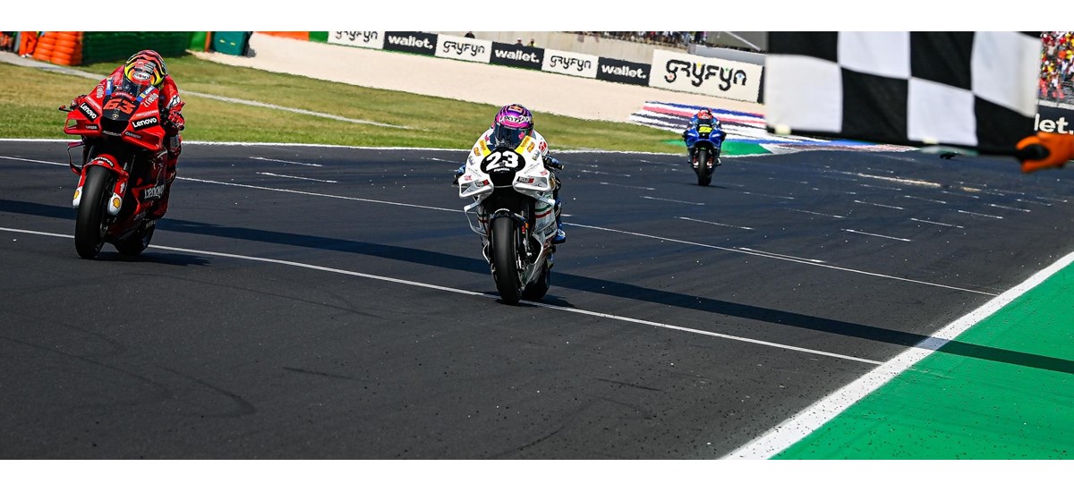 Βγαίνοντας από την τελευταία στροφή, ο Bagnaia έφτασε στην καρό σημαία μόλις 0,034 δευτερόλεπτα μπροστά από τον Bastianini, ο οποίος μάλιστα έκανε και νέο ρεκόρ γύρου αγώνα.