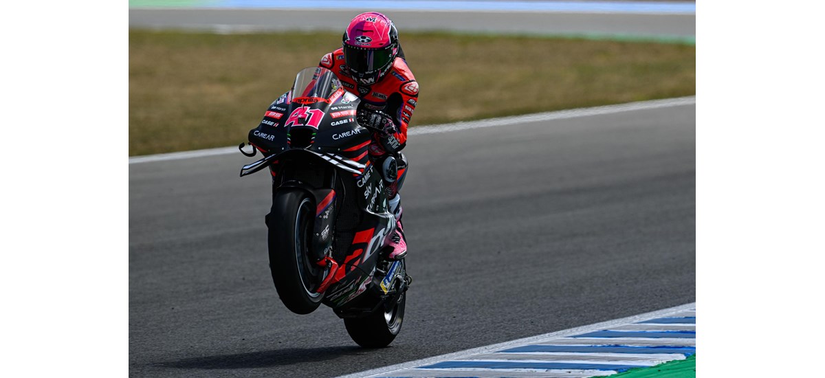 "Μου αρέσει όταν έχει ζέστη και γλιστράει", είπε ο Aleix Espargaro αφού πήρε την πρώτη θέση στα συνδυασμένα φύλλα χρόνου την Παρασκευή, μόλις 0,002 δευτερόλεπτα από τον Maverick Vinales.