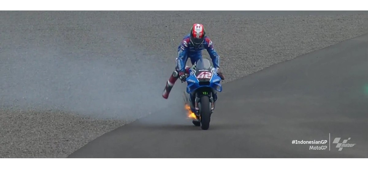 "Υπήρχε πρόβλημα με το σωληνάκι του λαδιού", εξήγησε ο Rins "Στην 10η στροφή είχα ένα μικρό γλίστρημα πίσω. Κοίταξα τις μπότες μου και το ελαστικό, αλλά όλα ήταν φυσιολογικά, οπότε συνέχισα να πιέζω".