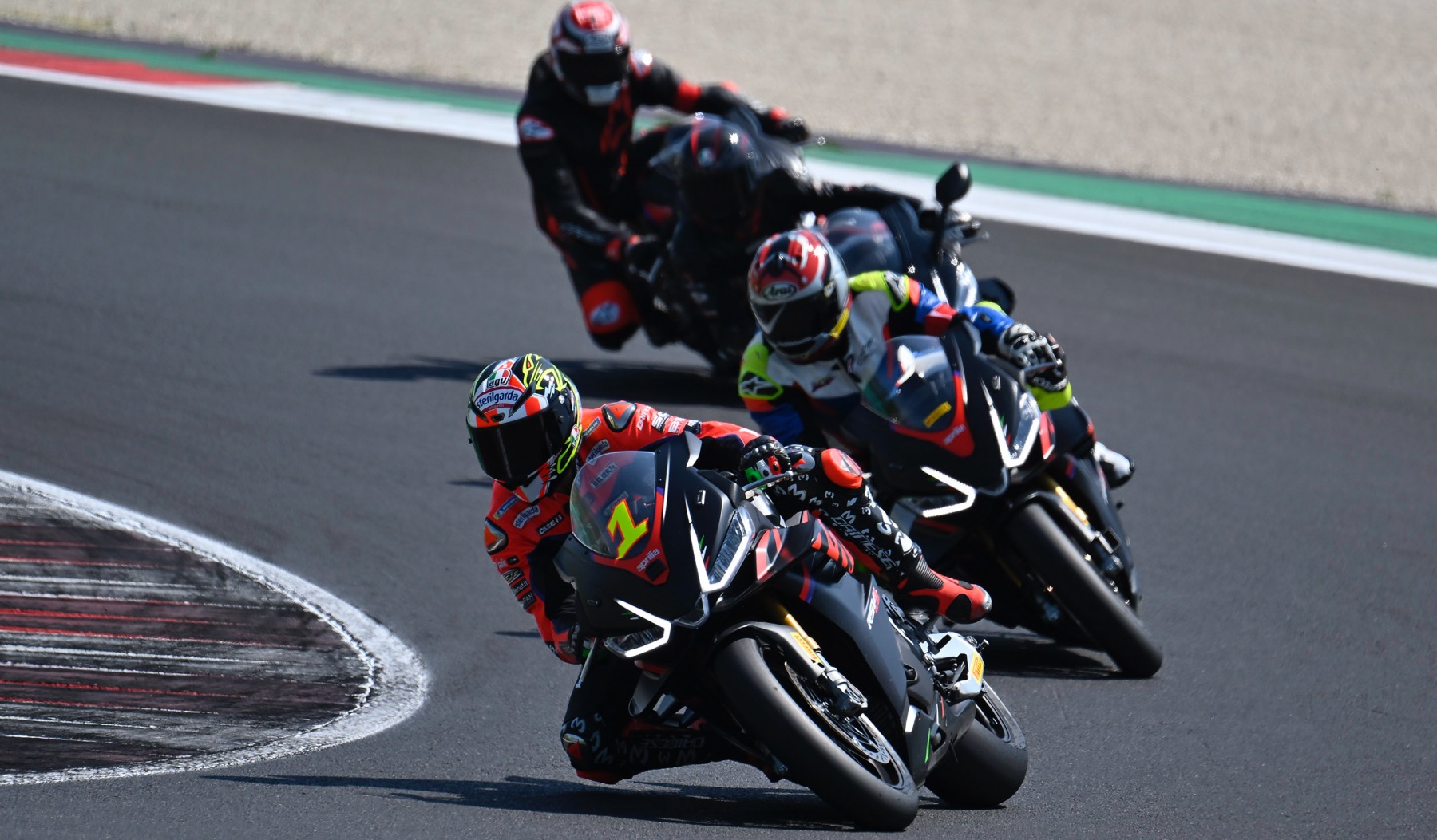 Στην πίστα με τις supersport μοτοσυκλέτες της Aprilia, μαζί με μεγάλους πρωταθλητές με εξαιρετικό ταλέντο και γεμάτοι με ενέργεια προπονητές: ο 6 φορές Παγκόσμιος Πρωταθλητής και θρύλος του MotoGP Max Biaggi και οι αναβάτες του MotoGP Miguel Oliveira και Lorenzo Savadori.