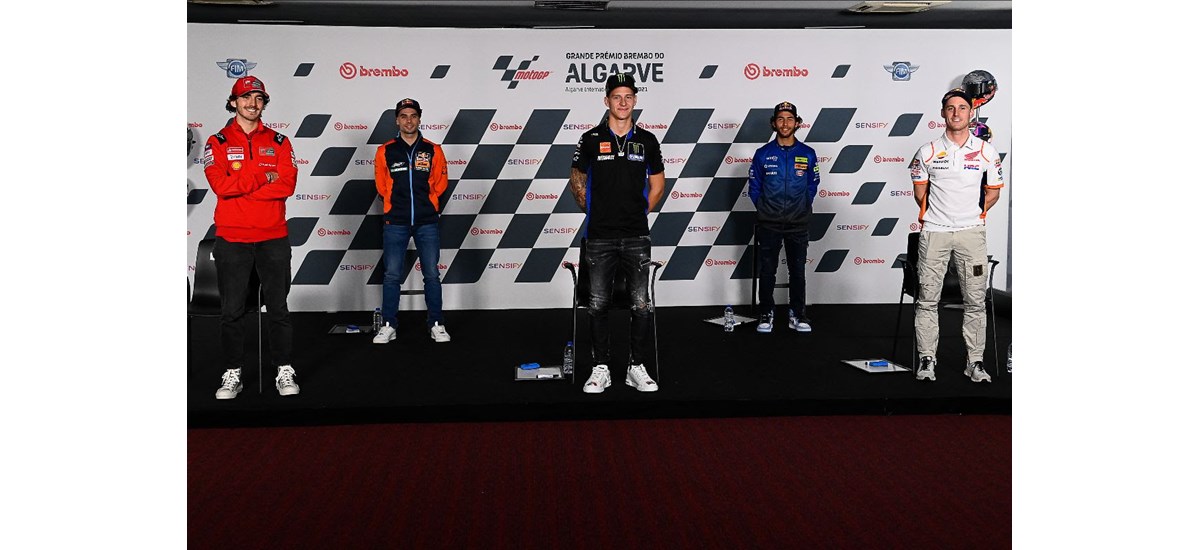 Η σκόνη έχει κάπως καταλαγιάσει μετά από ένα δραματικό αγώνα που καθόρισε το πρωτάθλημα την τελευταία φορά, αλλά τώρα ήρθε η ώρα να επανέλθουμε σε ετοιμότητα για άλλο ένα εκπληκτικό Σαββατοκύριακο. Το Grande Prémio Brembo do Algarve ξεκίνησε την Πέμπτη με τη συνέντευξη Τύπου πριν από την εκδήλωση, με τους Fabio Quartararo, Francesco Bagnaia, Pol Espargaro, Miguel Oliveira και  Enea Bastianini να παρευρίσκονται.