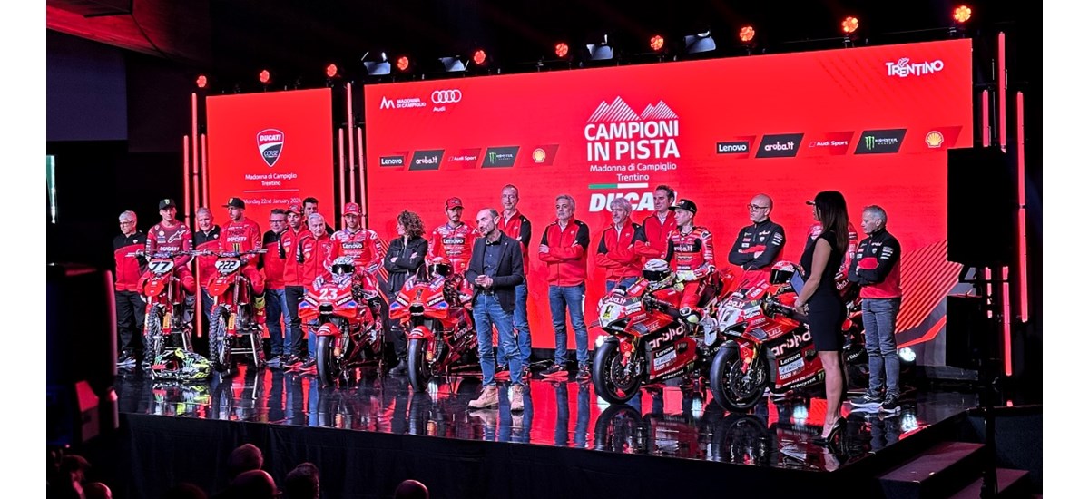 * Οι επίσημες ομάδες Ducati MotoGP και WorldSBK παρουσιάστηκαν στην Madonna di Campiglio κατά τη διάρκεια της δεύτερης εκδήλωσης "Campioni in Pista".