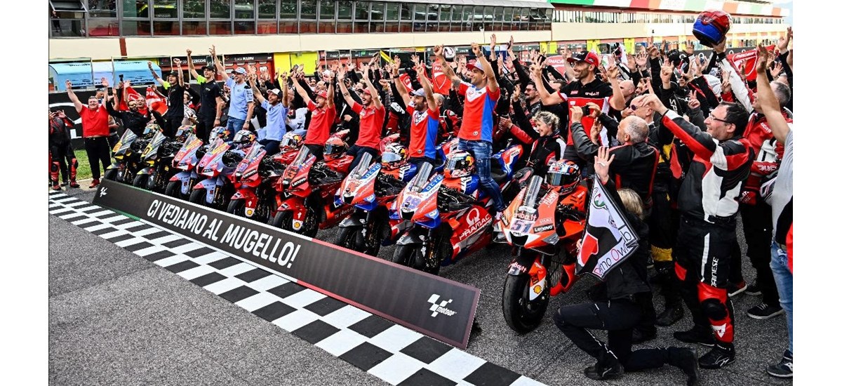 Στην πίστα, η υπόλοιπη αρμάδα της Ducati περίμενε να τους χαιρετήσει: ο Johann Zarco και ο Jorge Martin της Pramac Racing, ο Luca Marini και ο Marco Bezzecchi της Mooney VR46 Racing Team και ο Fabio Di Giannantonio της Gresini Racing MotoGP, μαζί με τον Michele Pirro. Η πομπή έκανε έναν γύρο στο Mugello, πριν επιστρέψει στην κύρια ευθεία για αναμνηστικές φωτογραφίες.