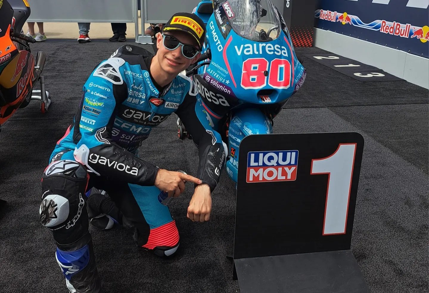 Ο David Alonso κατέκτησε την παρθενική του pole position στην τελευταία του προσπάθεια, σταματώντας το χρονόμετρο στο 2:14.292 και γράφοντας ιστορία, όντας ο πρώτος Κολομβιανός αναβάτης που καταφέρνει κάτι αντίστοιχο. Ο Jose Antonio Rueda είναι μόλις 0,017 δευτερόλεπτα πίσω του, στη δεύτερη θέση, ενώ την πρώτη σειρά συμπληρώνει ο επικεφαλής της βαθμολογίας, Daniel Holgado. Μάλιστα ο Rueda κατάφερε να βρεθεί στην πρώτη θέση και να κάνει νέο ρεκόρ γύρου, όμως είχε πατήσει και με τις δύο ρόδες εκτός των ορίων της πίστας στην 20η στροφή και είδε τον γύρο του να ακυρώνεται.