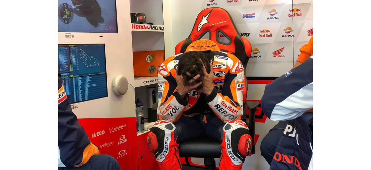 Ο Marc Marquez σήμερα έφτασε πολύ κοντά στο να πετύχει την πρώτη του νίκη από το 2019. Με την αλλαγή μοτοσυκλετών με βρόχινα ελαστικά (από σλικ) κατάφερε να βρεθεί μπροστά από τον Fabio Quartararo και να χτίσει μια διαφορά δύο δευτερολέπτων. Μετά ήρθε η πτώση.