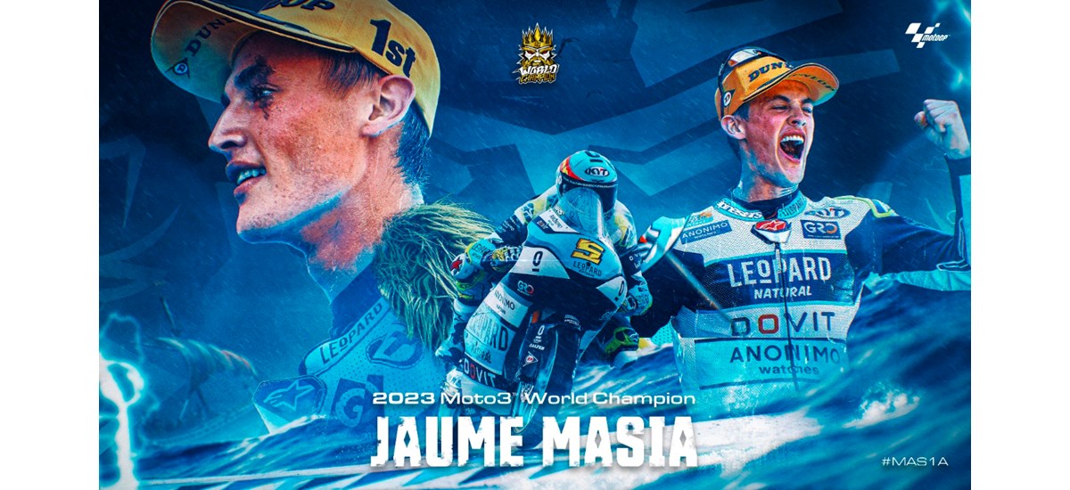 Ένας από τους μεγαλύτερους σε ηλικία αναβάτες της μικρής κατηγορίας κερδίζει τον Τίτλο με νίκη στον προτελευταίο αγώνα της χρονιάς. Ο αναβάτης της Leopard Racing ολοκληρώνει το πρωτάθλημα με μια νίκη στο GP του Κατάρ και ναι, είναι επίσημο: Ο Jaume Masia (Leopard Racing) είναι ο Παγκόσμιος Πρωταθλητής Moto3™ για το 2023! Μια νίκη σε ένα τεταμένο Grand Prix του Κατάρ εξασφάλισε στον Ισπανό έναν παρθενικό Τίτλο Grand Prix, με τη νίκη στην Lusail να προσθέτει τρεις ακόμη νίκες σε μια σεζόν που έχει δει τον Ισπανό να ανεβαίνει σε 10 βάθρα μέχρι στιγμής.