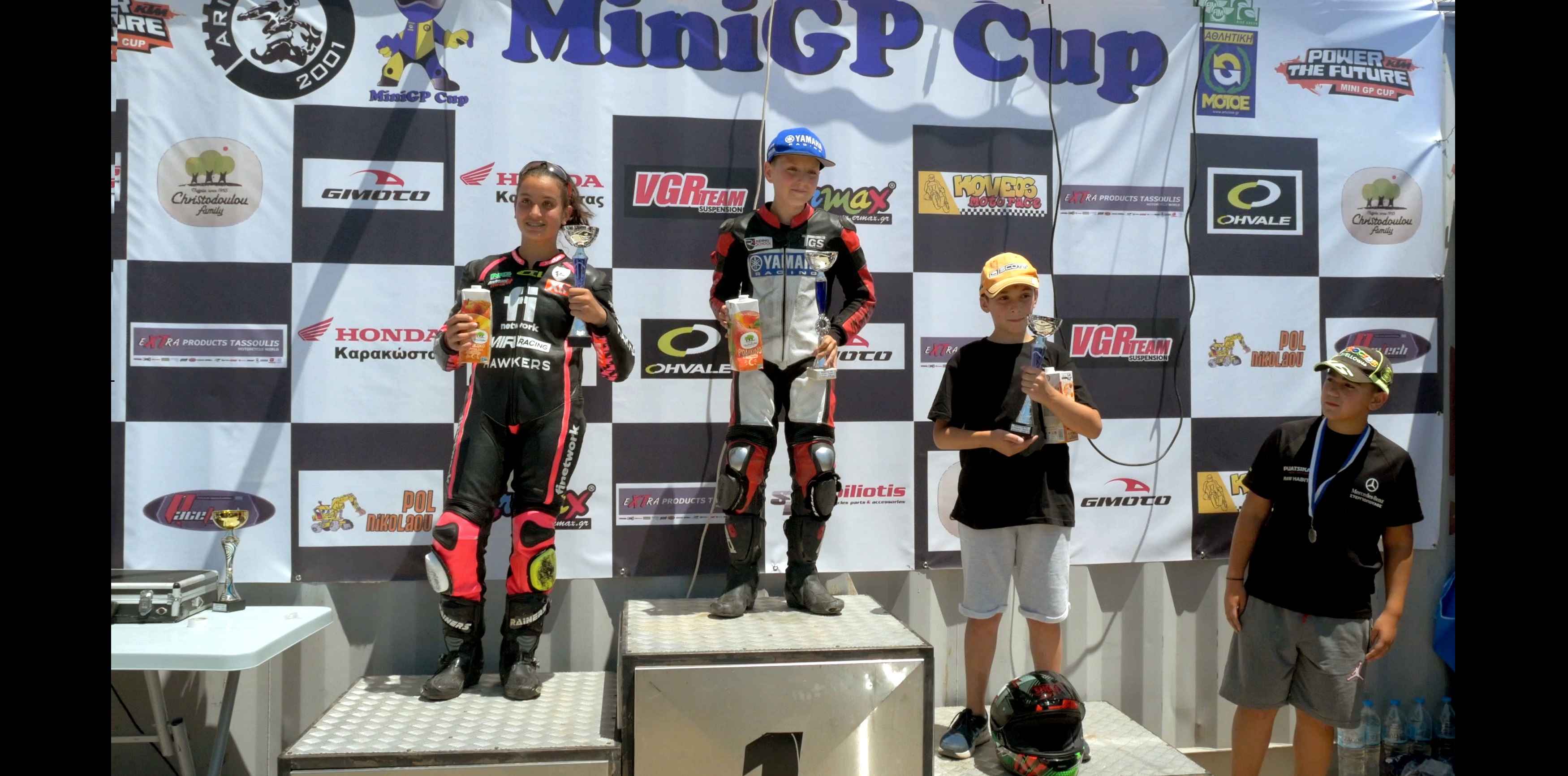 Στις κατηγορίες KidGP & KidGP1 είχαμε ομάδα «πρωτἄρηδων» (όλοι συμμετείχαν σε αγώνα για πρώτη φορά) με τον 10χρονο Αντώνη Βεντούρα (KidGP) να φέρνει ξανά στο προσκήνιο μια οικογένεια με μισό αιώνα ιστορίας στην ελληνική αγωνιστική μοτοσυκλέτα και να μονομαχεί για την «άτυπη νίκη» στην γενική με τον 8 χρονο Μάξιμο Μαυρόπουλο (ακολουθεί τα χνάρια του, πολυκυπελούχου στον θεσμό, αδελφού του, του Ντίνου Μαυρόπουλου).