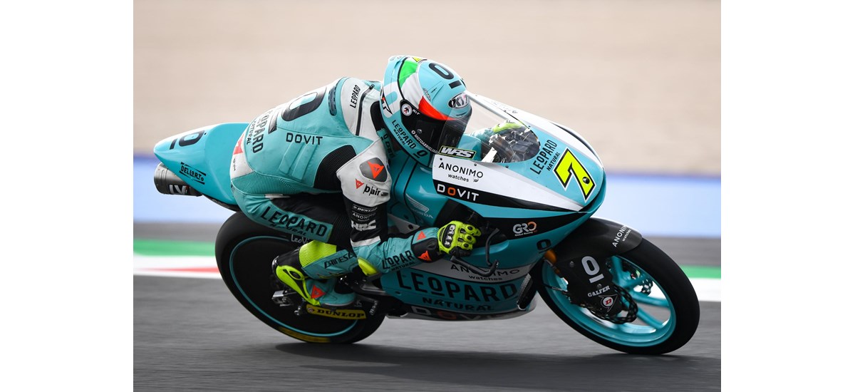 O Matteo Bertelle, που κάνει σήμερα το ντεμπούτο του στην Moto3, με την ομάδα της VR46 πέτυχε ένα εκπληκτικό αποτέλεσμα, κάνοντας τον έκτο καλύτερο χρόνο, μπροστά από τον John McPhee, που επέστρεψε στην Μoto3 μετά το Σαββατοκύριακό του στην Aragon ως αναβάτης της Moto2.