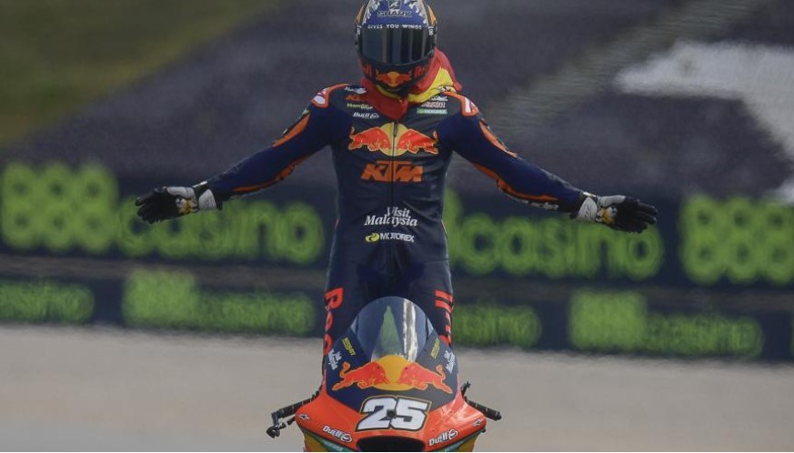 Έτσι πήρε άνετα την πρώτη νίκη της καριέρας του και το δεύτερο συνεχόμενο βάθρο του στην κατηγορία! Κανείς δεν μπορούσε να τον ακολουθήσει καθώς περνούσε τη γραμμή του τερματισμού πανευτυχής! Πίσω του ο Aron Canet, ο Remy Gardner και ο Joe Roberts έδωσαν τη μάχη για τις δύο τελευταίες θέσεις στο βάθρο.