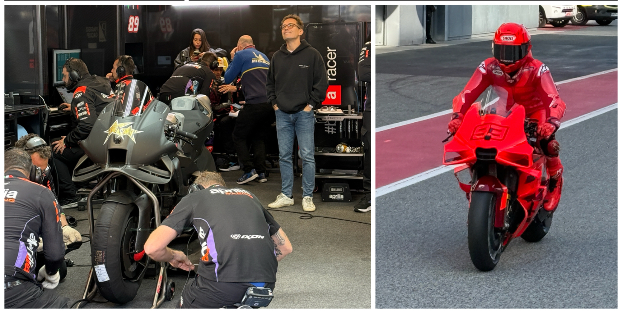 Ο Ισπανός 8 φορές Παγκόσμιος Πρωταθλητής έκανε αρχικά 5 γύρους και αμέσως ξεκίνησε τη συνεργασία με το νέο αρχιμηχανικό του ώστε να καταλάβει την GP25. Δίπλα του ο Pecco Bagnaia έβλεπε από την πρώτη στιγμή ότι η δημοσιότητα θα είναι τουλάχιστον μέχρι το ξεκίνημα της χρονιάς, στην άλλη πλευρά του γκαράζ.