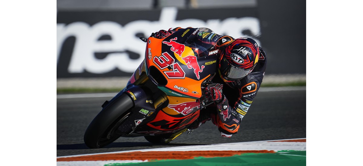 Ο Augusto Fernandez έκανε ένα δυναμικό ξεκίνημα στο Gran Premio Motul de la Comunitat Valenciana καθώς έρχεται στον τελικό της χρονιάς με 9,5 βαθμούς διαφορά από τον Ai Ogura. Ο Fernandez σημείωσε 1:34.979 στις ΕΔ1, με τον Pedro Acosta να κάνει το 1-2 για την Red Bull KTM Ajo, όντας 0,227 δευτερόλεπτα μακριά από τον ομόσταυλό του. Οι δύο αναβάτες του Aki Ajo όχι μόνο ήταν ταχύτεροι, αλλά έκαναν μαζί τους γύρους τους, ανταλλάζοντας την πρώτη θέση μερικές φορές.