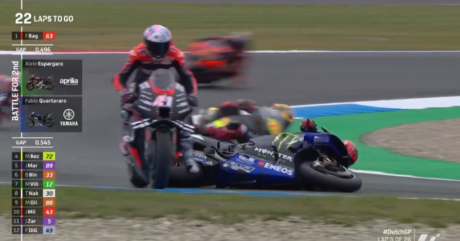 Η περίφημη πια πτώση του Fabio Quartararo στο Assen, στην οποία παρέσυρε εκτός πίστας και χάλασε τον Αγώνα του Aleix Espargaro, έχει σηκώσει μια θύελλα διαμαρτυριών από την πλευρά της Yamaha και των οπαδών του Γάλλου Παγκόσμιου Πρωταθλητή, αλλά υπάρχουν και αρκετοί φίλοι του MotoGP που θεωρούν ότι θα έπρεπε να τιμωρηθεί!