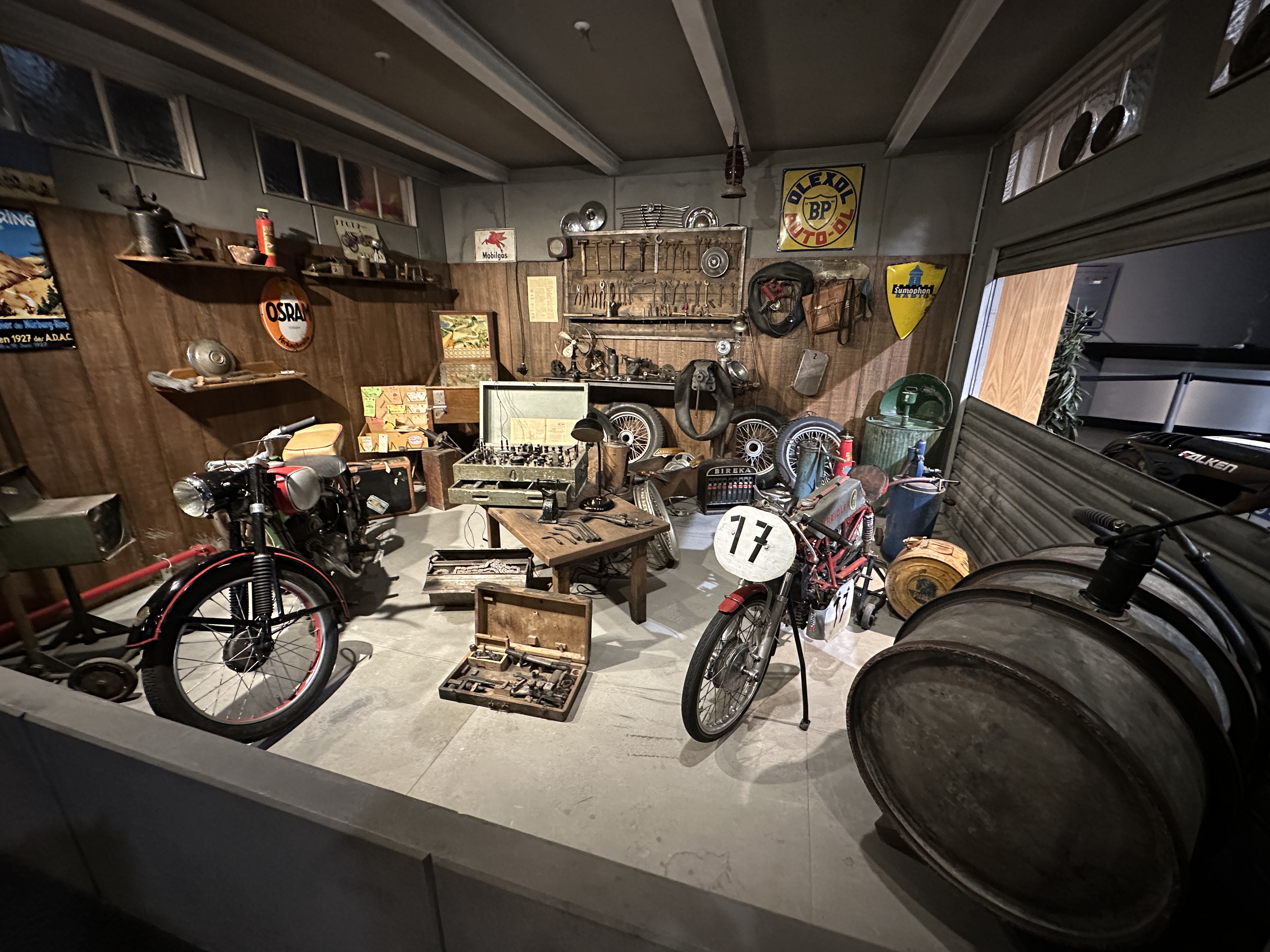 Στο Μουσείο που λειτουργεί στην τεράστια εγκατάσταση που περιλαμβάνει και εμπορικό κέντρο μηχανοκίνητων υπηρεσιών και αντικειμένων, υπάρχει ένα από τα γκαράζ των ομάδων της εποχής, ενώ καλοδιατηρημένες εκτίθενται και μοτοσυκλέτες που έχουν κάνει το γύρο της μεγάλης πίστας των 20 χλμ. Αντίστοιχα έχουν διαμορφωθεί τα γκαράζ του πρώτου Paddock της παλιάς πίστας και εκεί μπορεί να βρει κανείς όμορφα αντικείμενα των παλιότερων εποχών.