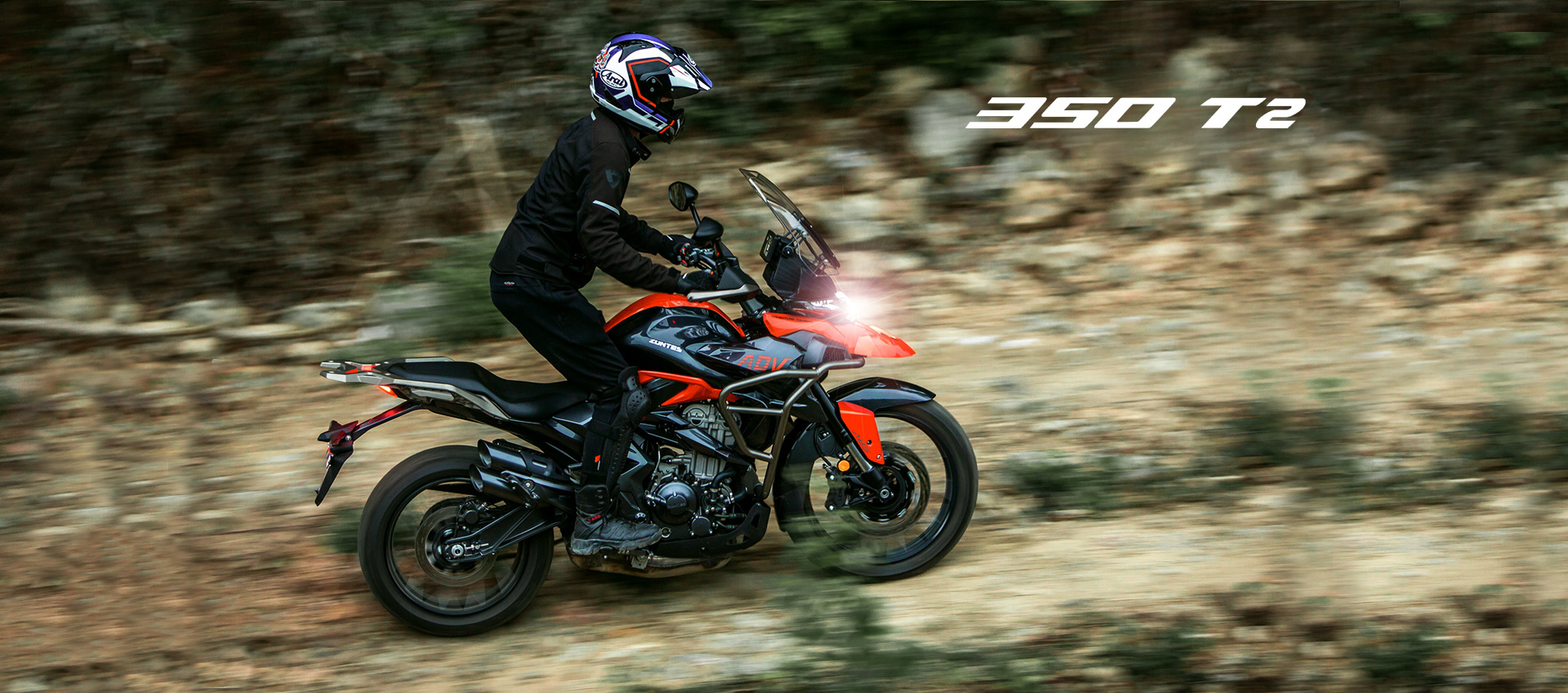 Με γνώμονα ακριβώς αυτό, τη δυνατότητα δηλαδή της 350Τ2 για κίνηση και σε διαδρομές δίχως άσφαλτο, η μοτοσυκλέτα διαθέτει στον στάνταρ εξοπλισμό της προστατευτικά κάγκελα για τον κινητήρα και τα πλαστικά, μελετημένα προσεκτικά, ώστε ακόμη και οι μικρές ανώδυνες πτώσεις να μην τραυματίσουν στο ελάχιστο το πανέμορφο σχεδιαστικά κοστούμι της.