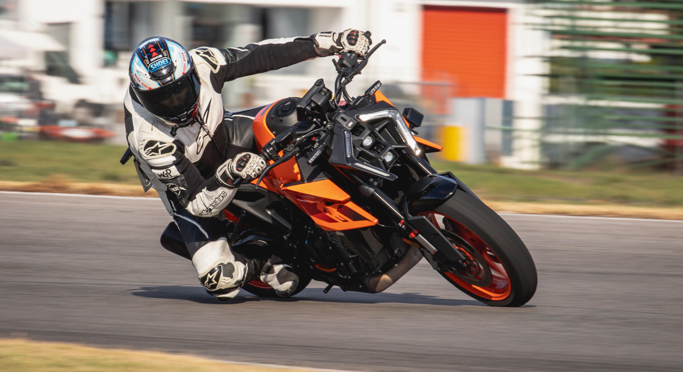 Η KTM 990 Duke ζυγίζει 179 κιλά χωρίς καύσιμο και με 14 κιλά επιπλέον από το γεμάτο ντεπόζιτο, οι πρώτοι γύροι στην πίστα είναι περισσότερο αναγνωριστικοί με την χρονομέτρηση να έρχεται δεύτερη στο μυαλό αφού δεν είναι απαραίτητα η επίθεση χρόνου που θα δώσει την ευχαρίστηση στην οδήγηση, αλλά οι στροφές με τα γόνατα να ακουμπούν εύκολα στην άσφαλτο και η ιδανική γραμμή να διατηρείται σαν να είναι παιχνίδι η επιλογή της και όχι προσπάθεια από τον έμπειρο αναβάτη.