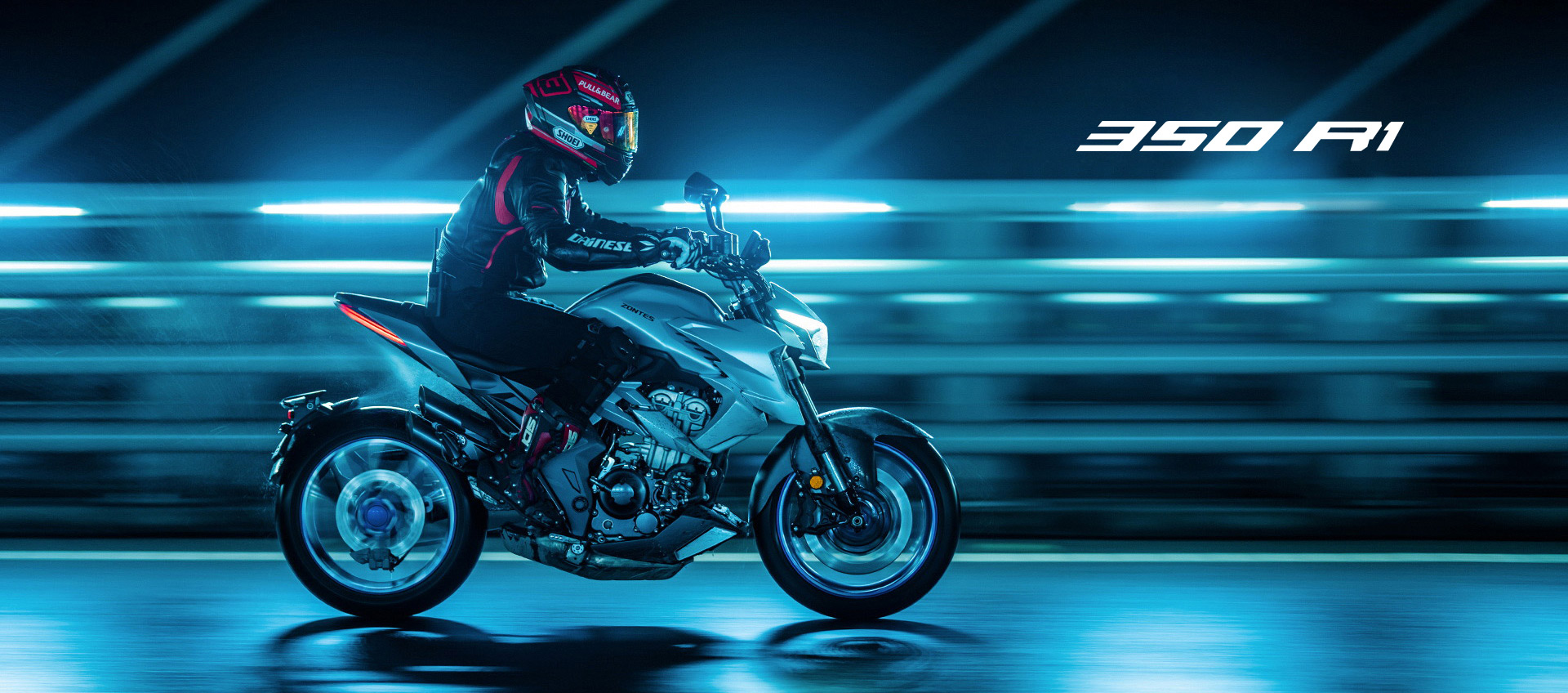 Όλα τα φωτιστικά σώματα της 350R1 είναι τεχνολογίας LED, με το χαρακτηριστικό σχήμα του προβολέα της οικογένειας “R” να δίνει ακόμη περισσότερη έμφαση στο σπορ χαρακτήρα της μοτοσυκλέτας, ενώ ταυτόχρονα προσφέρει μια ευρεία και φυσική δέσμη φωτός σε όλο το οπτικό πεδίο του αναβάτη.