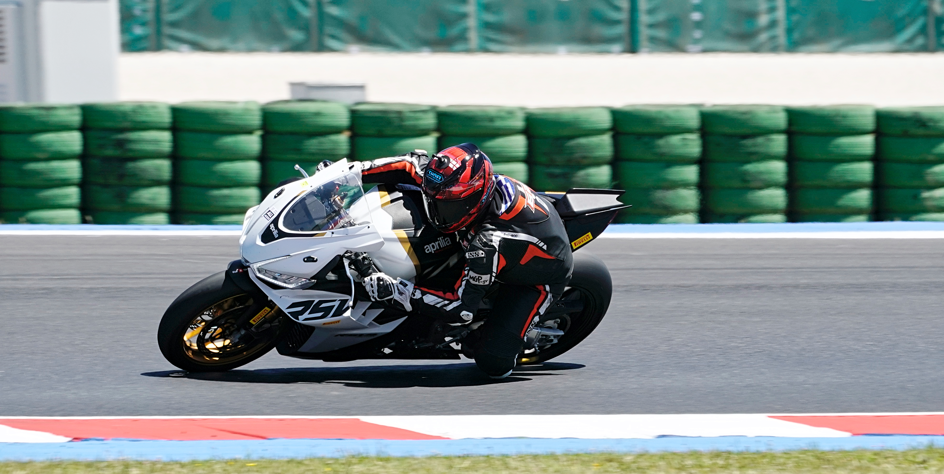 Μπήκα λοιπόν στην πίστα αρχικά με την RS660 Extrema των 100 ίππων για να ανακαλύψω και στο Μιζάνο – την είχαμε οδηγήσει και στις Σέρρες πέρυσι – ότι η μεσαία μοτοσυκλέτα της Aprilia είναι ένα θαυμάσιο παιχνίδι σούπερσπορ οδήγησης που δεν σε κουράζει με τα μόλις 166 κιλά της (άδεια) και δεν σε φοβίζει με το άνοιγμα του γκαζιού, με τους 100 ίππους να την ωθούν ομαλά προς την έξοδο της στροφής. Με μια τέτοια μοτοσυκλέτα χωρίς καμία μετατροπή στην ίδια πίστα ο Miguel Oliveira, οδηγός της μάρκας στο MotoGP, έγραψε το φοβερό χρόνο του 1'45''467 και όσοι είχαν την τύχη να κάνουν γύρους στο Misano μπορούν να καταλάβουν το τι σημαίνει αυτός ο χρόνος.
