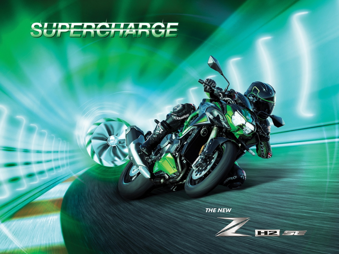 Το νέο Kawasaki Z H2 SE ξυπνά τις αισθήσεις, οπότε μόνο μία λέξη αρκεί να θυμηθεί κανείς για να αναπολήσει την εικόνα του 2021 Kawasaki Z H2 SE - Supercharge!